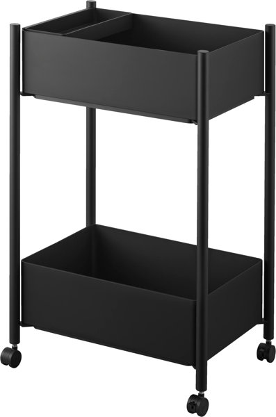 小物トレー付き収納ワゴン 2段 タワー ブラック
